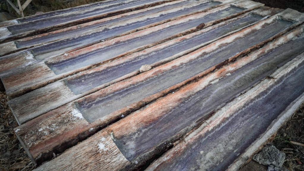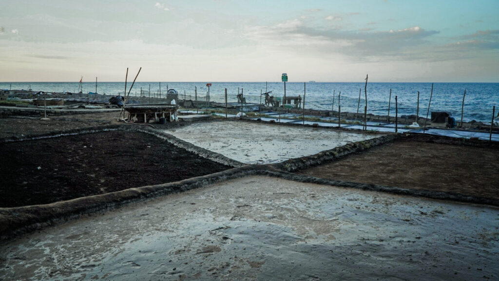 Saya melihat palung-palung garam berjajar di depan sebuah restoran bergaya klasik yang berdiri di pinggir Pantai Dusun Penyumbahan. “Mereka [pengusaha restoran] memang butuh itu, untuk dipamerkan kepada wisatawan asing. Biar terlihat otentik,” terang Bli Don.